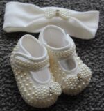 Baby Girls Bootees with Pearls & Headband 2 Piece Set by Couche Tot – Ivory or White