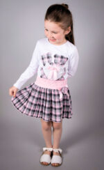 Girls Top & Skirt Outfit Set – White/pink/Grey Or Pink/Grey