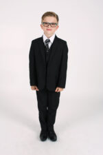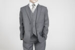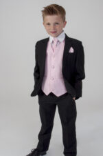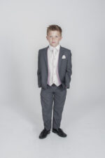 Boys 5 piece grey suit with pink waistcoat and cravat