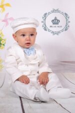 Baby boys 2 piece outfit set by Sarah Louise – (Ivory/Blue) – 011253