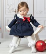 Girls Hand Smocked Bow Dress By Caramelo Kids – Red Or Navy Blue