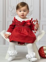 Baby Girls Hand Smocked Bow Red Dress Set By Caramelo Kids