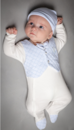 Baby boys sky blue waistcoat baby grow and hat set by Caramelo Kids