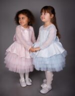 Girls layered tulle lace dress with bow by Caramelo Kids – Blue, Pink or Grey