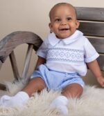 Baby boys hand smocked sky blue romper by Caramelo Kids