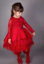 Girls long sleeved lace dress with bow by Caramelo Kids – red or pink