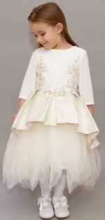 Girls Ivory Velvet & Tulle Dress With Sleeve by Caramelo Kids
