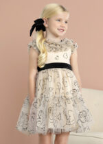 Girls Beige Tulle Flocked Hearts Dress By Abel & Lula -13-05540-008