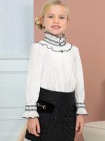 Girls White Viscose Embroidered high neck Blouse By Abel & Lula-13-05659-005