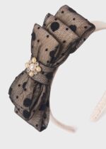 Girls Beige & Black Tulle Bow Hairband By Abel & Lula -13-05983-008