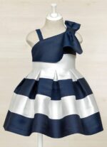 Girls Navy Blue & White Striped Dress By Abel & Lula – 5042