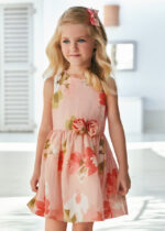 Girls Peach Floral Linen Dress by Mayoral – 24-03911-088
