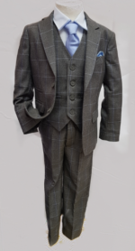 Boys Grey Check 3 piece suit by Romano