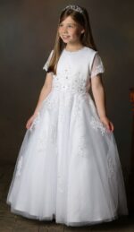 Girls White Holy Communion Dress by Little People – 80708 Zella