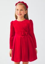 Girls Red Velvet dress with long sleeves By Abel & Lula – 12-05533-063