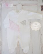 Baby Girls Ivory & Pink Babygrow & Hairband Boxed Gift Set By Couche Tot