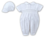 Baby Boys Hand Smocked Shortie & Hat Set by Sarah Louise – Style 002200 – White or Ivory