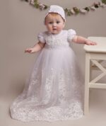 Baby Girls Ceremony Gown & Bonnet Set by Sevva – White Or Off White