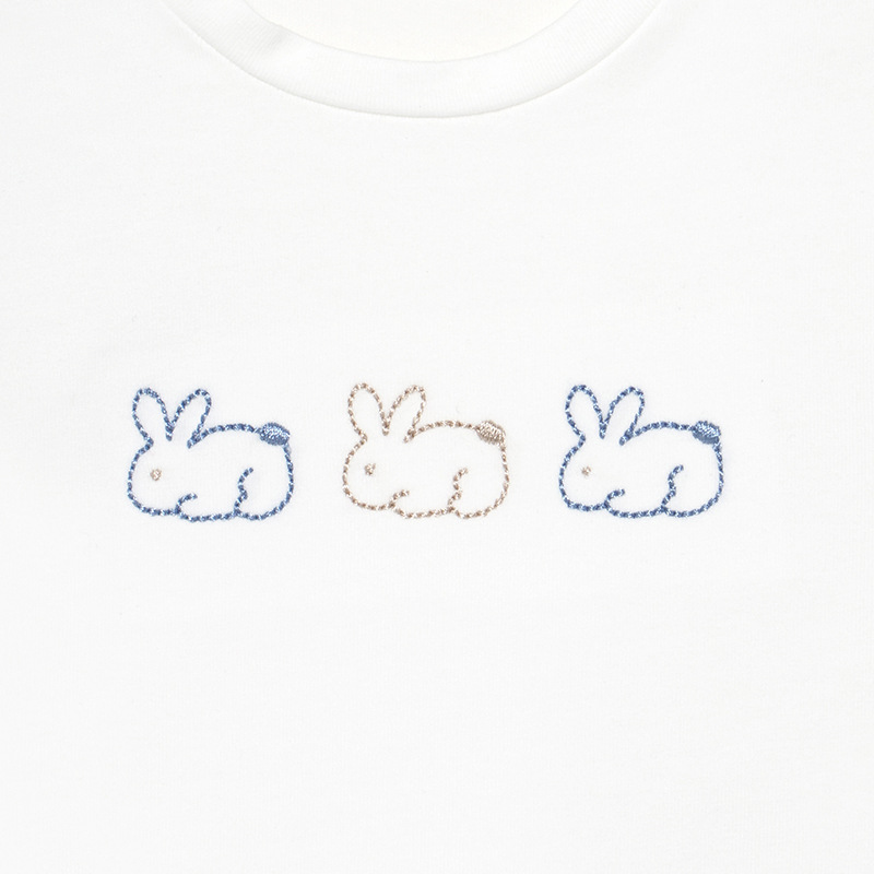 ECOFRIENDS garment contains organic cotton Short sleeved T-shirt for newborn boy. Round neckline. Snap-button fastening on the back to allow the garment to be put on easily.