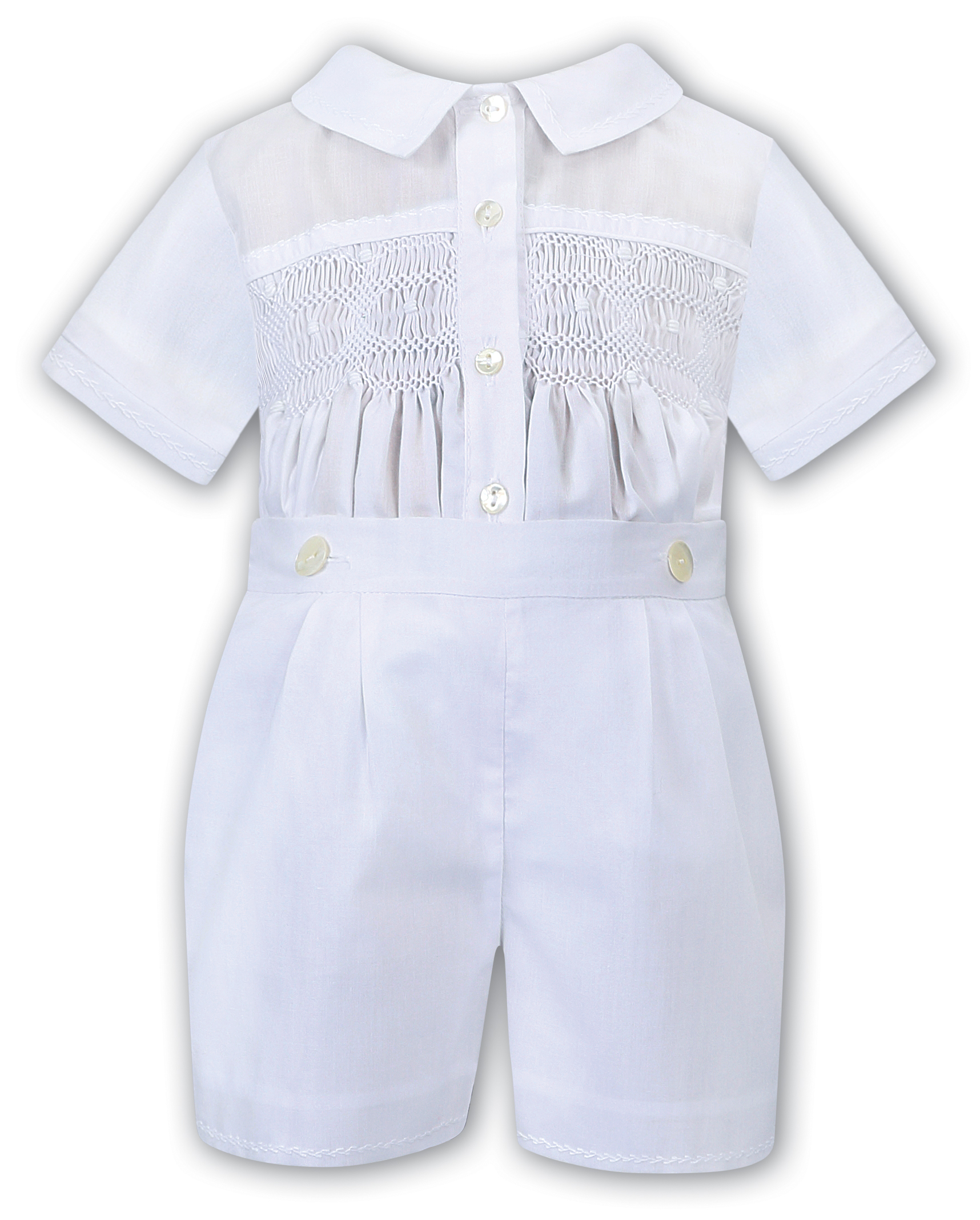 Baby Boys Hand-Smocked short sleeve 2 piece set by Sarah Louise – White/White – C4000US