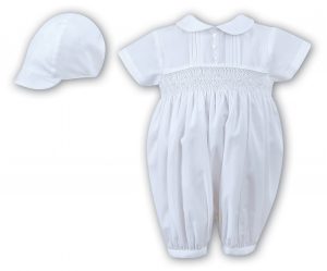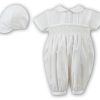 Baby Boys Hand Smocked Shortie & Hat Set by Sarah Louise – Style 002200 – White or Ivory