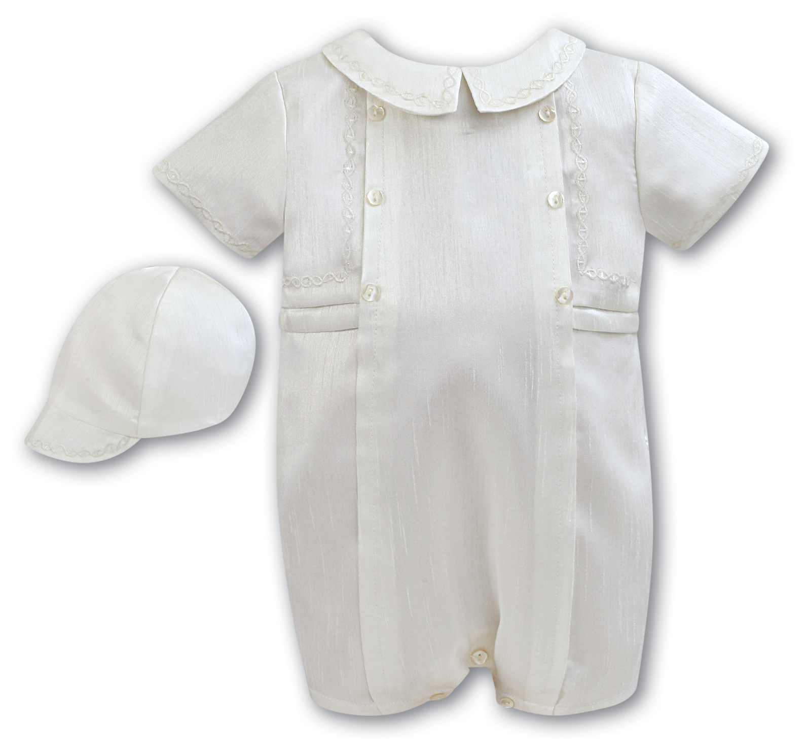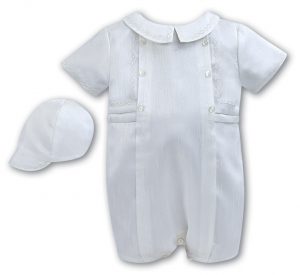 Baby boys smart shortie and hat set by Sarah Louise.