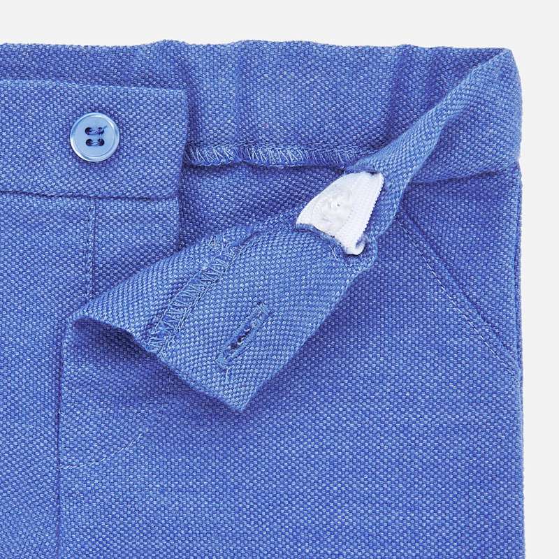 Bermuda shorts. Single button fastening. Elasticated waistband for a better fit. Made from soft elasticated cotton fabric. Upturned hem. Mock, decorative front pockets. Plain design.