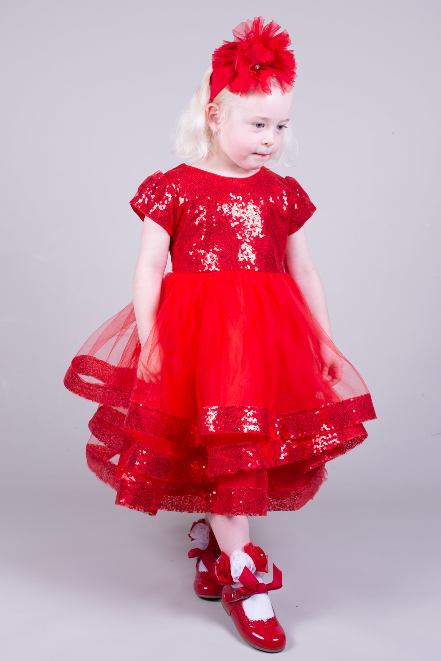 Girls Red Tutu Tiered Dress With Sequin Top & Matching Back Bow
