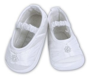 These adorable Sarah Louise shoes are available in Ivory Silk or White Satin.