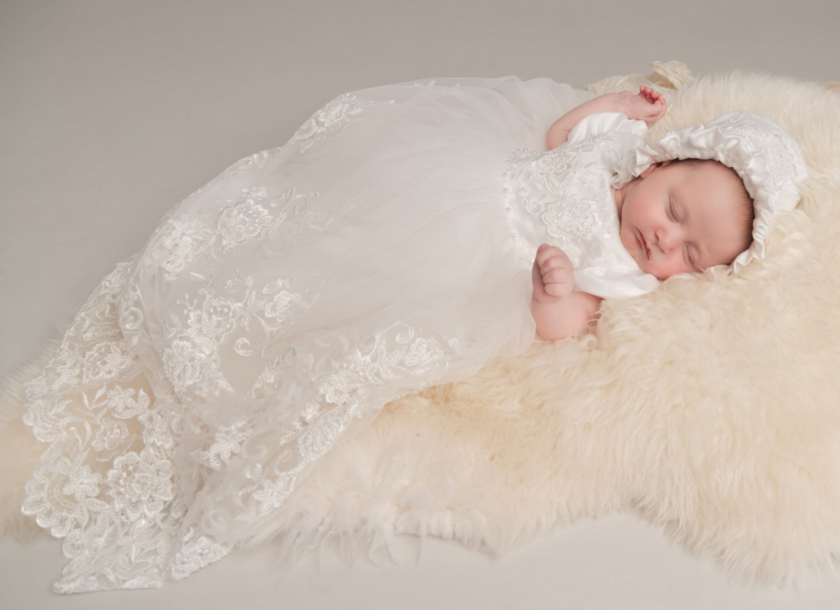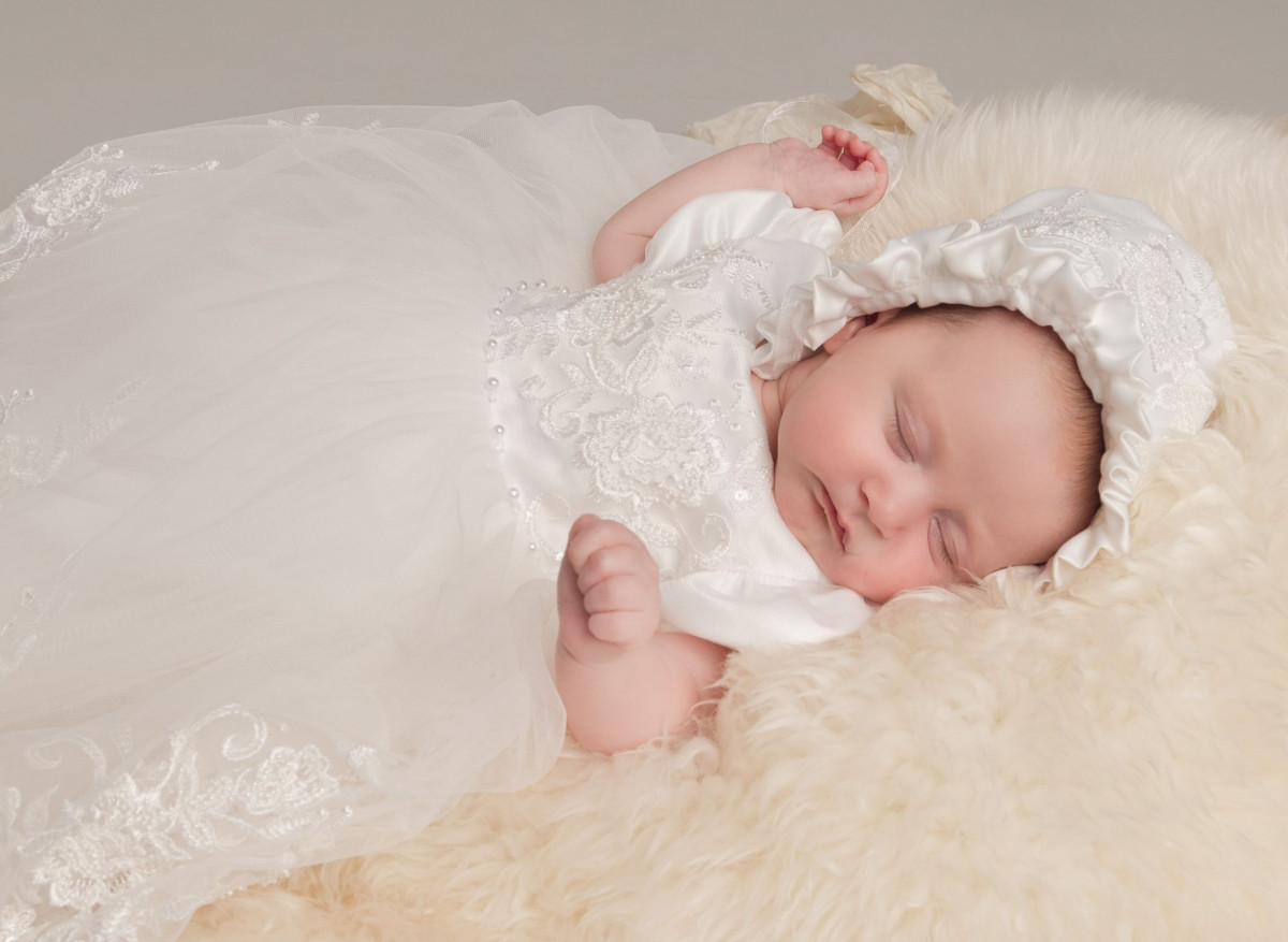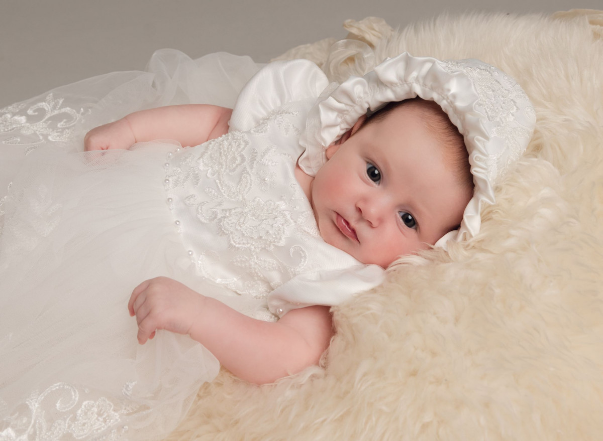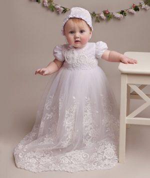 Ceremony gown and bonnet set for baby girls by Sevva.