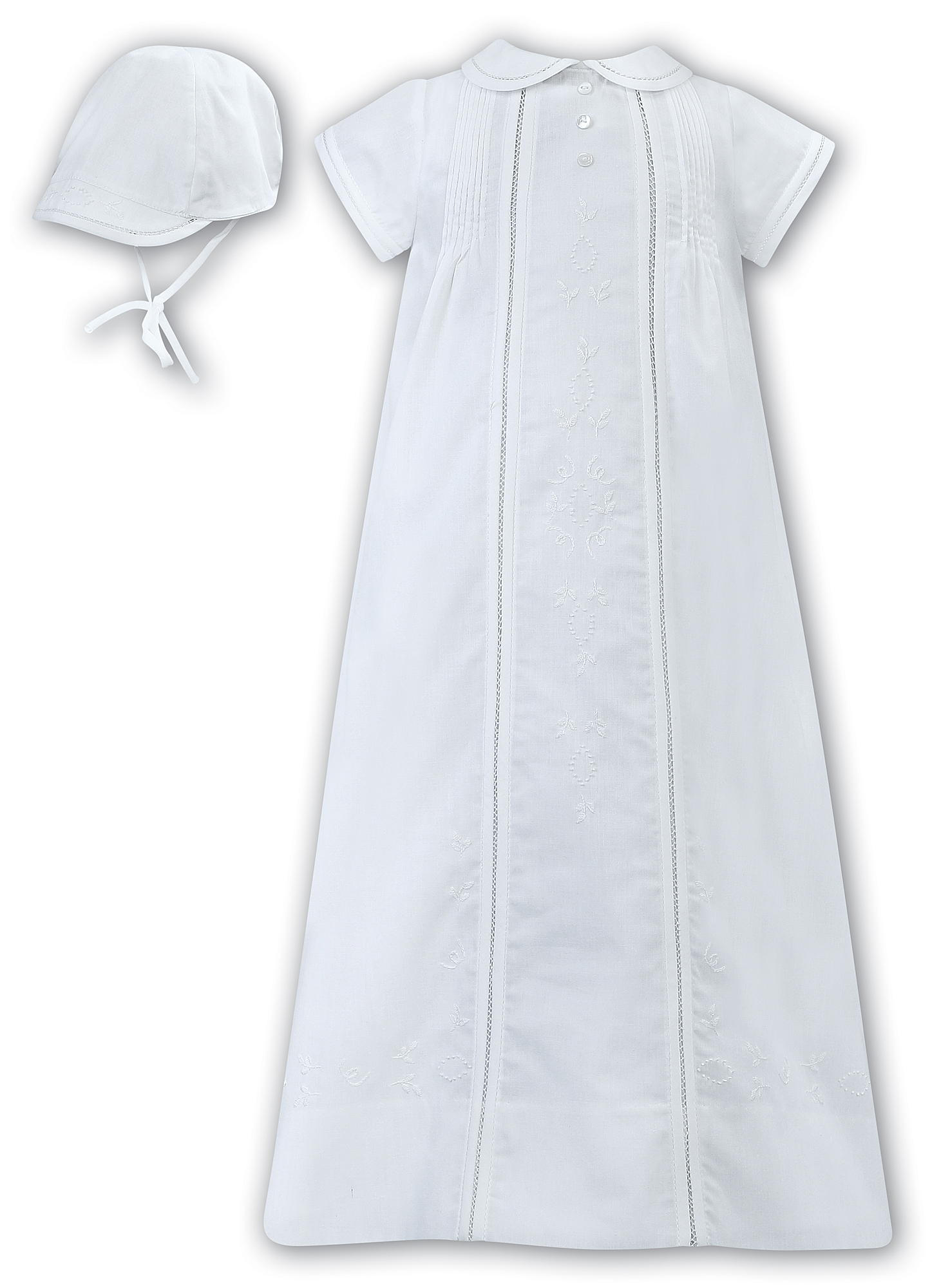 Baby White Christening Robe, Slip and Cap By Sarah Louise – 001186