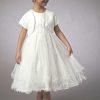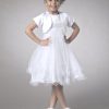 This beautiful tulle dress has a satin bodice and a plain satin jacket.