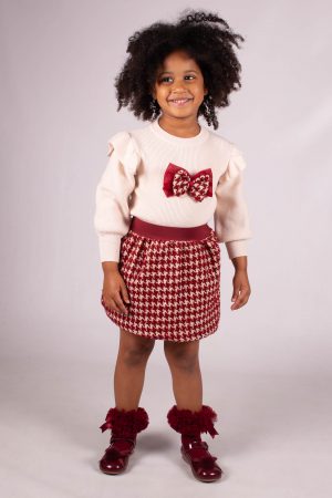 Stylish ivory, red and beige skirt set for girls by Beau KiD