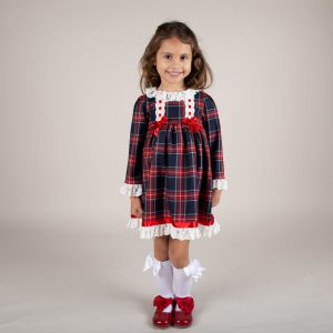 Baby Girls beautiful navy blue and red tartan dress by Caramelo Kids