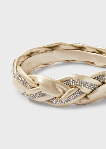 Girls Braided Faux Leather Hairband By Mayoral – 23-10486- Champagne, White, Red, Black