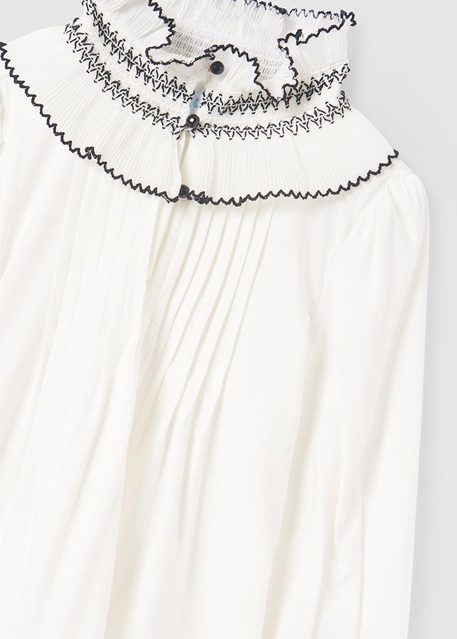 Girls White Viscose Embroidered high neck Blouse By Abel & Lula-13-05659-005