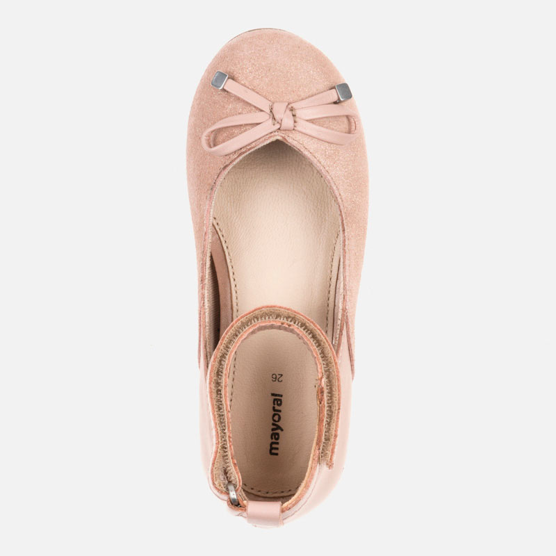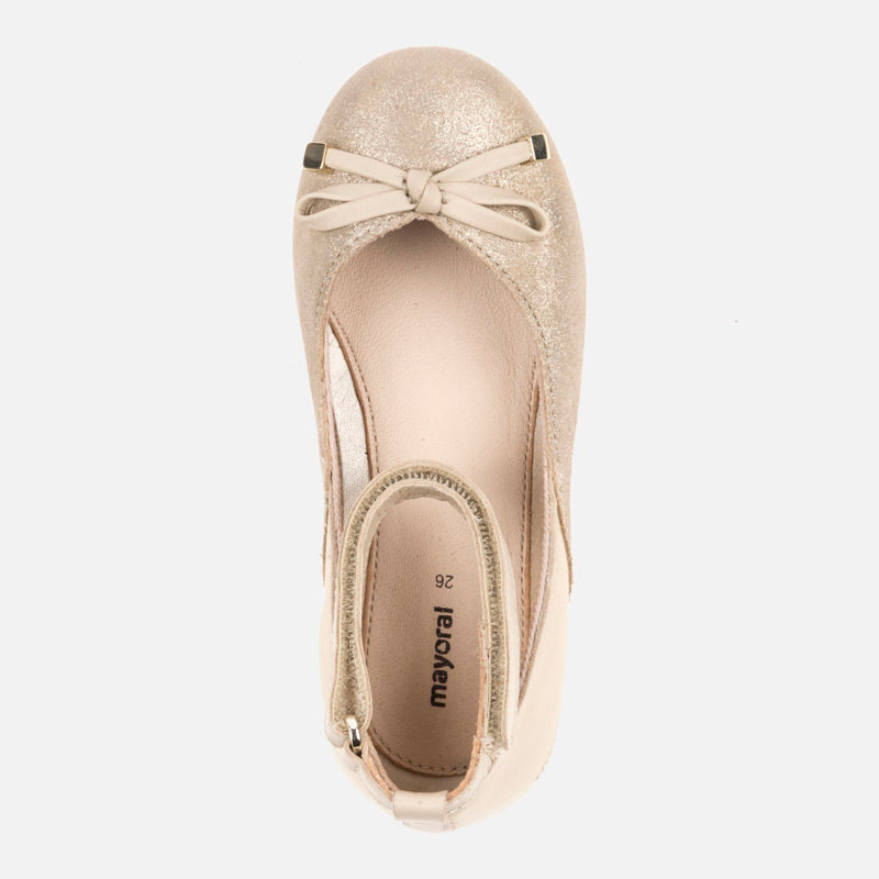 Shoes with cotton inner lining and leather insole. Leather outer material. Non-slip rubber sole to strengthen the grip when walking. Adjustable velcro strap on the ankle for a better fastening of the shoe. Decorative elements: metallic details.