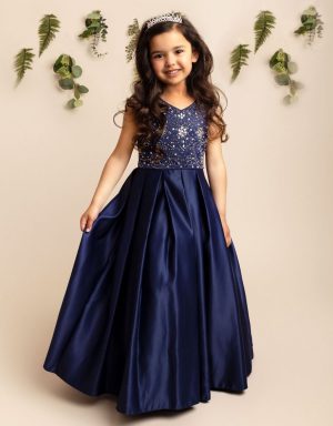 Gorgeous smooth satin special occasion navy blue dress. 6-16 years