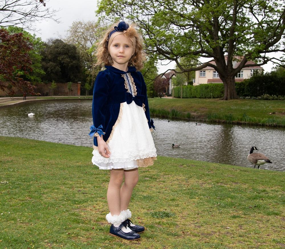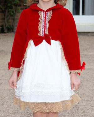 Stunning Red/Navy Velvet and ivory dress for girls by Beau KiD