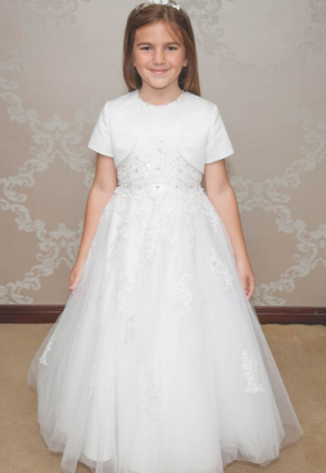 Girls white communion dress and bolero by Little People – Rhea – 80459