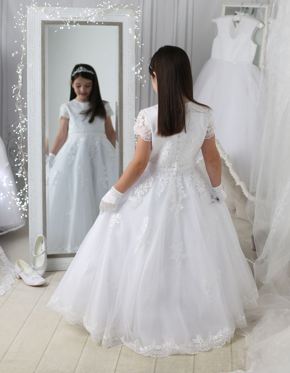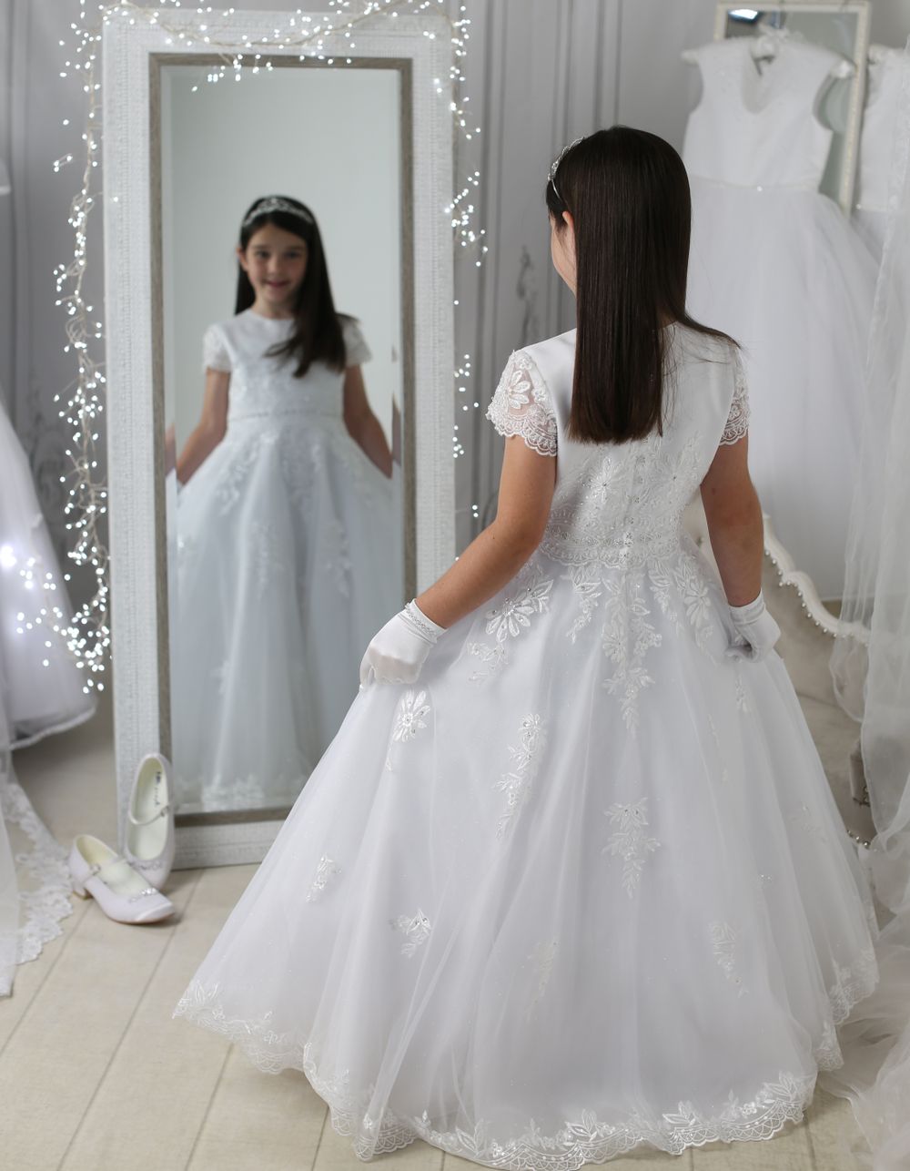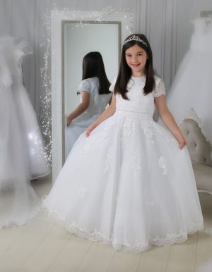 Girls White Holy Communion Dress by Little People – 80744 – Joy