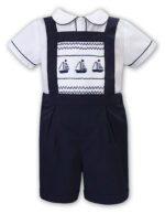 Boys & Baby Boys Navy Blue & White Hand-Smocked Dungaree Set By Sarah Louise – 012202