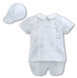 Baby boys top, shorts & cap outfit set by Sarah Louise – 002225- White or Ivory