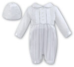 Baby boys Long Sleeve Romper and Hat By Sarah Louise (002232) – White or Ivory