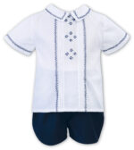 Baby boys 2 piece set by Sarah Louise – C4001 – White/Navy