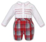 Baby boys Hand smocked Tartan 2 piece shorts set by Sarah Louise – 011730