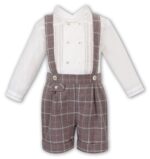 Baby boys Ivory/Brown Check 2 piece shorts set by Sarah Louise – 011750