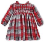 Baby girls red and grey smocked checked dress by Sarah Louise – 011733