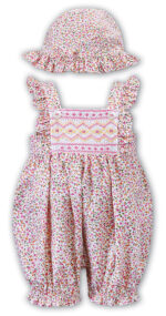 Baby Girls Floral Hand-Smocked Bubble & Hat By Sarah Louise – 012393