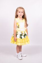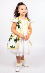 Girls White & Yellow Cotton Lemon Dress By Beau Kid